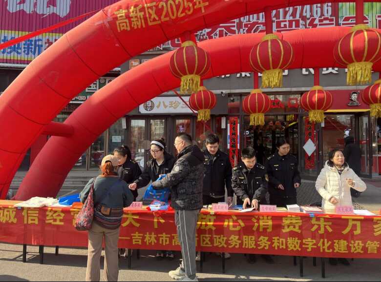 在第43个“3·15”国际消费者权益日,高新区政数局联合吉林市市场监督管理局高新分局、商务局、卫健局、教育(文旅)局,市消防高新大队、市司法局高新分局紧扣“走近3·15,“倡导诚信经营 激发消费活力 ”开展主题宣传活动。以政务诚信引领社会诚信建设,营造“知信、用信、守信”的浓厚社会氛围。